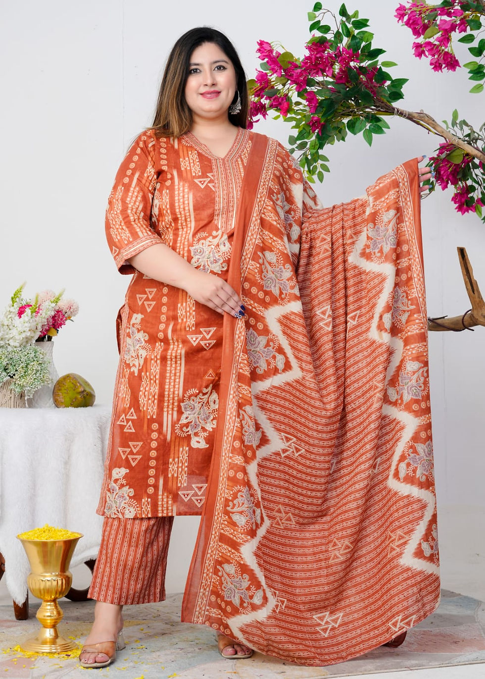 Rust Terra Tribal-Print Salwar Suit with Dupatta