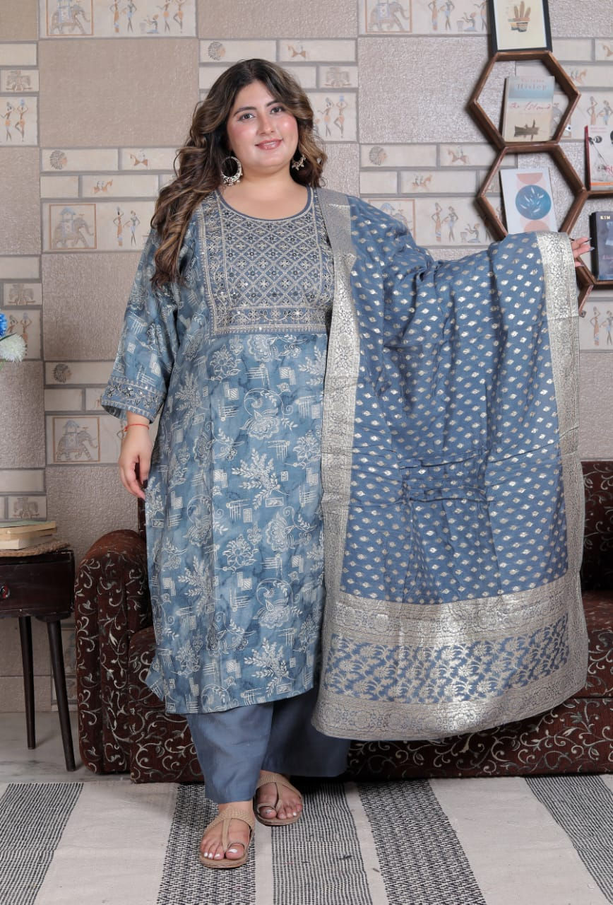 Grey Radiance Floral Salwar Suit with Dupatta
